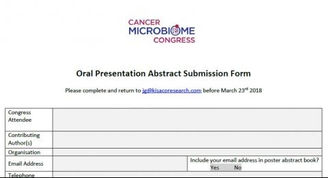 Cancer Microbiome Oral Presentation Abstract Submission Form